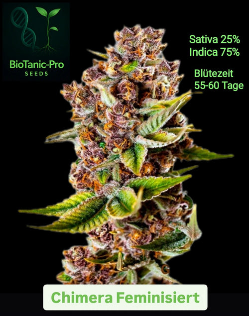 BioTanic-Pro Chimera 100% Feminisiert Sativa 25% Indica 75% Blütezeit 55.60 Tage sehr stark und würziger Geschmack
